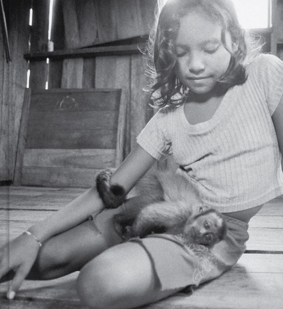 The book is filled with moments of pure magic, such as the aerial view of a winding river that is overlaid with a translucent, snake like form curving through the clouds and water. This image at once evokes the Boto legend of shapeshifting river dolphins. It reminds me of the “enchanted” tales children weave during playtime, blending reality and imagination.